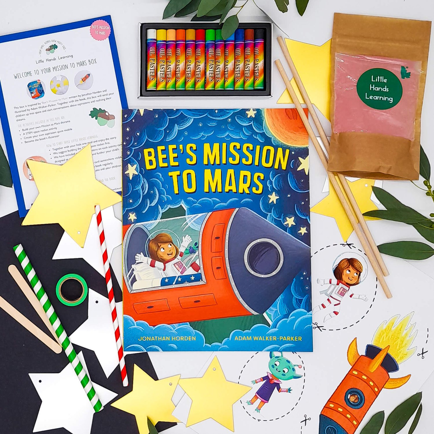 This box is inspired by the fun and diverse picture book ‘Bee’s Mission to Mars’ written by Jonathan Horden and illustrated by Adam Walker-Parker